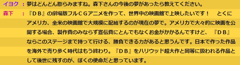 ドラゴンボールのフルCG化、東映社長の夢だった事が判明 2021/10/11 ねいろ速報さん " " 1: ねいろ速報 やってくれましたな社長 3: ねいろ速報 ゲームのグラならええやろ 5: ねいろ速報 社長が言ってるアメリカで今回のフルCGが大不評なのはどう思ってるんだろうか 続きを読む Source: ねいろ速報さん
