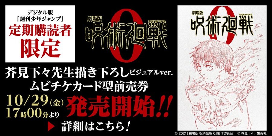 『#劇場版呪術廻戦0』前売券の好評を受け、芥見下々先生描き下ろしビジュアルver.ムビチケカード型前売券の発売が決定!