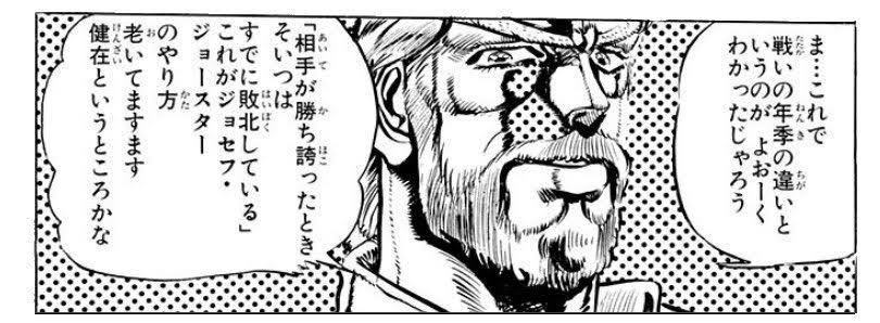 ジョセフ・ジョースター「相手が勝ち誇ったそいつはすでに敗北している」 2021/11/17 ねいろ速報さん " " 名前:ねいろ速報 ジョセフの戦闘いいよね 『ジョジョの奇妙な冒険』作者:荒木飛呂彦 集英社 名前:ねいろ速報 1 『ジョジョの奇妙な冒険』作者:荒木飛呂彦 集英社 スレ画の言葉には説得力あるよ 名前:ねいろ速報 20 >>1 勝ち誇って負けてる… 続きを読む Source: ねいろ速報さん