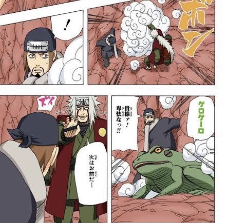 この術は、尋問中の捕虜数名を脅す際に用いられ、仲間が蛙になる様を