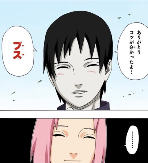 f最初は人に悪気なくブスとか言い出すくらい人の心がわからないし感情表現無理だったのにナルトとかサクラと仲良くなりたい一心で必死に本とか読んで友達の作り方とか学んで、最終的に可愛い息子と嫁に恵まれるくらい真人間になるって凄いよねサイ