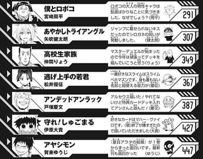 【悲報】「週刊少年ジャンプ」の新連載2本、早くもドベ2になってしまう・・・ 2022/2/15 最強ジャンプ放送局 " " 1: 2022/02/15(火) 11:41:32.67 早くもアヤシモンしゅごまるがドベ2を取った模様 2: 2022/02/15(火) 11:41:50.68 ドロン、PPPPPPは意外と好調 4: 2022/02/15(火) 11:42:09.29 今週のしゅごまるは許した 6: 2022/02/15(火) 11:42:22.85 アヤシモン頑張ってくれ 続きを読む Source: 最強ジャンプ放送局