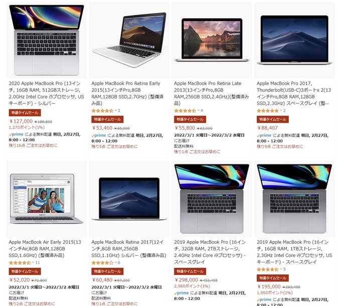 特選タイムセール中のMacBook