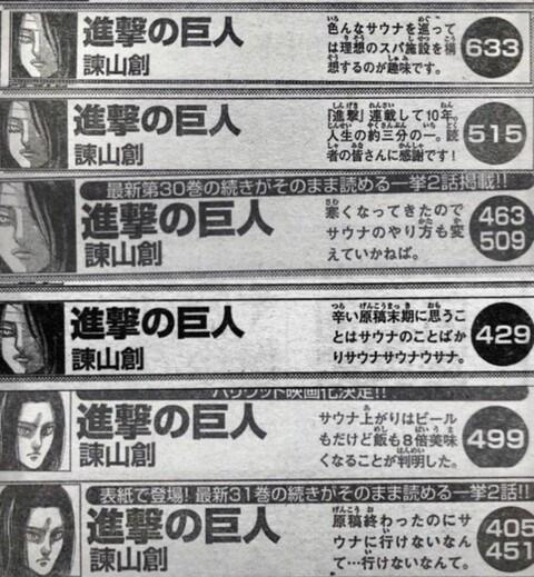 漫画雑誌の巻末コメント倒くさそう 2022/3/8 ねいろ速報さん " " 名前:ねいろ速報 毎回考えなきゃいけない割に内容にそこそこ縛りありそうだし他の連載陣の状況によってはお祝いコメントとか出す必要もあったりで地味に面倒くさそう 忙しいとそんなに近況報告することもなさそうだし 名前:ねいろ速報 2 つまりサウナが最高 名前:ねいろ速報 25 >>2 その辺りは単行本の巻末でもついにぶち撒けたからな、サウナ推し 続きを読む Source: ねいろ速報さん