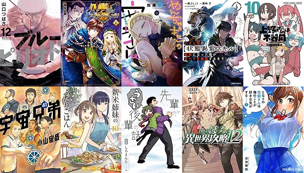 講談社より「ブルーピリオド 12巻」「宇宙兄弟 41巻」「ヴィンランド・サガ 26巻」「上京生活録イチジョウ 4巻」「JJM 女子柔道部物語 13巻」「この会社に好きな人がいます 11巻」など、KADOKAWA「八男って、それはないでしょう! 11巻」「日本国召喚 6巻」「新米姉妹のふたりごは 10巻」「ヤンキー君と白杖ガール 8巻」「アンゴルモア 元寇合戦記 博多編 6巻」「ざつ旅-That’s Journey- 7巻」など発売。