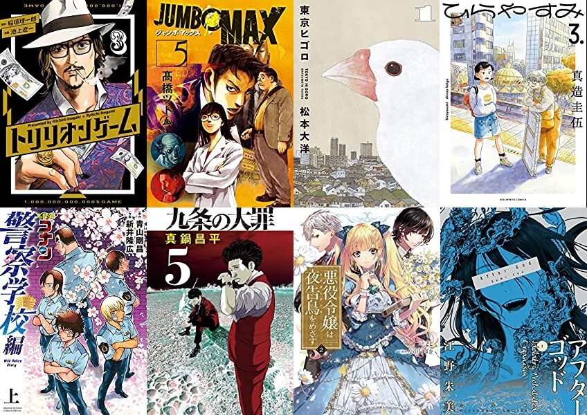 こちらでは、セールとなっている小学館のマンガをピックアップ。「トリリオンゲーム」「JUMBO MAX~ハイパーED薬密造人~」「東京ヒゴロ」「ひらやすみ」「名探偵コナン ゼロの日常」「名探偵コナン 警察学校編 Wild Police Story」「九条の大罪」「悪役令嬢は夜告鳥をめざす」「アフターゴッド」「異世界に救世主として喚ばれましたが、アラサーには無理なので、ひっそりブックカフェ始めました。」「BLUE GIANT EXPLORER」「僕が死ぬだけの百物語」などなど。最新巻もセールになっている作品も多数あります。