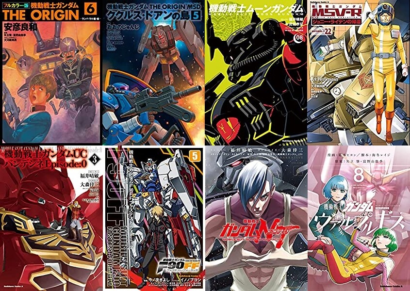 セールとなっているのは、「機動戦士ガンダム THE ORIGIN MSD ククルス・ドアンの島 1~5巻」「機動戦士ムーンガンダム 1~8巻」「機動戦士ガンダム MSV-R ジョニー・ライデンの帰還 1~22巻」「機動戦士ガンダムUC バンデシネ Episode:0 1~3巻」などなど。