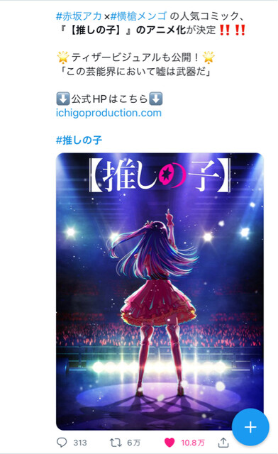 【朗報】「推しの」子アニメ化決定ツイート、6万RTを叩き出す 2022/6/10 ねいろ速報さん " " 1: ねいろ速報 とんでもないRT数叩き出してる模様 2: ねいろ速報 これ一般認知度呪術超えるだろ… 4: ねいろ速報 アニメより実写のほうがええと思うんやけどなあ 続きを読む Source: ねいろ速報さん