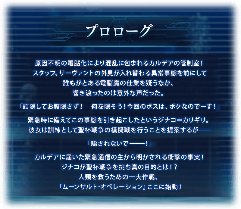 「Fate/Grand Order(FGO)」の期間限定イベント「聖杯戦線 ~ムーンサルト・オペレーション~」が6月15日18時から6月29日12時59分までの期間開催されます。「終局特異点」をクリアしたマスターが参加可能です。