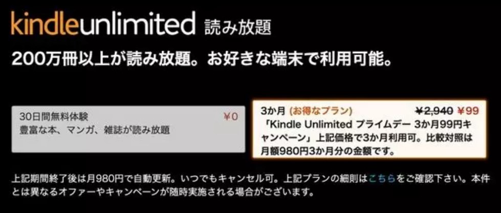 200万冊以上の書籍が対象!Kindleの読み放題サービス Kindle Unlimitedにて、3ヶ月99円のプライムデーキャンペーンがスタートしました!キャンペーンは7月13日まで。