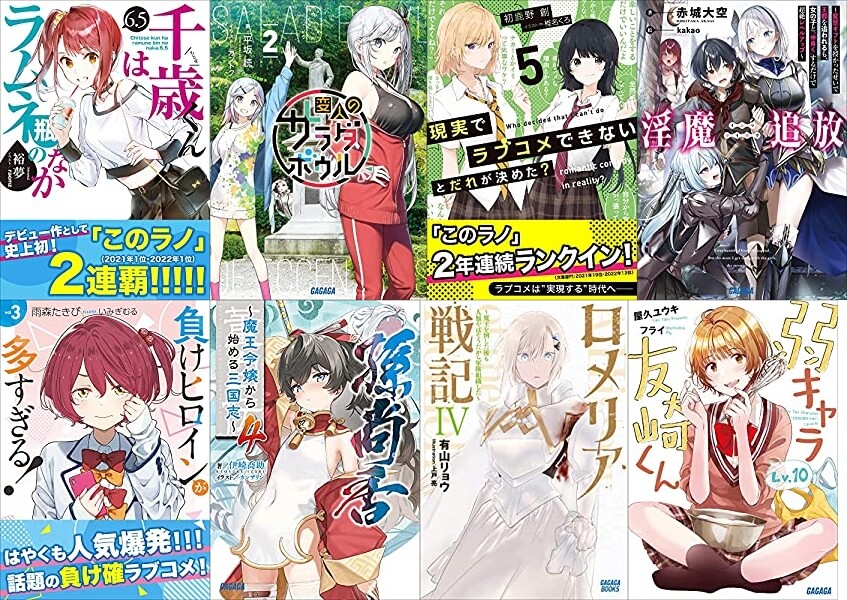 セールとなるのは、「千歳くんはラムネ瓶のなか」「変人のサラダボウル」「現実でラブコメできないとだれが決めた?」「淫魔追放」「負けヒロインが多すぎる! 」「董白伝~魔王令嬢から始める三国志~」「ロメリア戦記」「弱キャラ友崎くん」「出会ってひと突きで絶頂除霊!」「塩対応の佐藤さんが俺にだけ甘い」「ミモザの告白」「プロペラオペラ」「友人キャラは大変ですか?」などなど。
