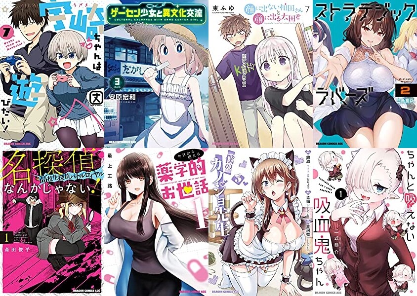 セールとなっているのは、「宇崎ちゃんは遊びたい!」「ゲーセン少女と異文化交流」「顔に出ない柏田さんと顔に出る太田君」「ストラテジックラバーズ」「名探偵なんかじゃない!」「今日から使える薬学的お世話」「魔王を圧倒する大魔導士ですが、家では彼に押されています。」「僕のカノジョ先生」などなど。