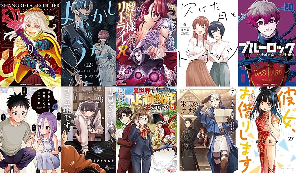 講談社からはアニメ化&ゲーム化決定「シャングリラ・フロンティア 9巻」に、アニメ放送中「それでも歩は寄せてくる 12巻」、ほか「ブルーロック 20巻」「彼女、お借りします 27巻」「カッコウの許嫁 13巻」「黒岩メダカに私の可愛いが通じない 5巻」「はじめの一歩 135巻」「甘神さんちの縁結び 6巻」「戦隊大失格 6巻」など20冊以上が発売。