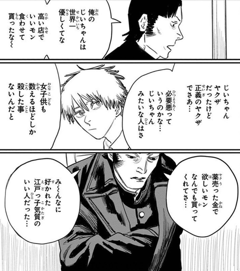 【チェンソーマン】ニセコイのセリフだと思ってた 2022/7/17 ねいろ速報さん " " 名前:ねいろ速報 【チェンソーマン】作者 藤本 タツキ 集英社 名前:ねいろ速報 1 1ページでこいつも爺ちゃんも殺されて当然だわ… ってさせてくれる 名前:ねいろ速報 2 ヤクザキャラ談義に必ず現れる奴らきたな… 続きを読む Source: ねいろ速報さん