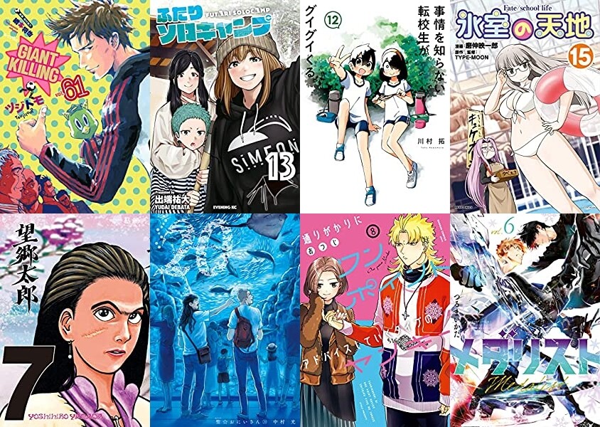 講談社からは、不動のサッカーマンガ「GIANT KILLING 61巻」、キャンプマンガ「ふたりソロキャンプ 13巻」、1年4ヶ月ぶり新刊「聖☆おにいさん 20巻」、ほか「望郷太郎 7巻」「メダリスト 6巻」「バトルスタディーズ 32、33巻」「ちいかわ なんか小さくてかわいいやつ 4巻」「天地創造デザイン部 8巻」「イサック 13巻」「猫奥 5巻」「ボールパークでつかまえて! 7巻」など35冊以上発売。