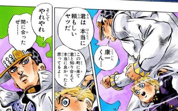 空条承太郎「康一くん、君は本当に頼もしいヤツだ」「尊敬するぜ、康一くん」←これ!! 2022/8/14 ねいろ速報さん " " 1: ねいろ速報 評価高すぎやろ 2: ねいろ速報 【ジョジョの奇妙な冒険】荒木飛呂彦 集英社 3: ねいろ速報 なんでこんな甘々なんや 続きを読む Source: ねいろ速報さん