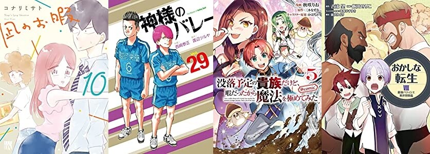 秋田書店「凪のお暇 10巻」「クジラの子らは砂上に歌う 22巻」など、芳文社「神様のバレー 29巻」「異世界でも風俗嬢やってみた 9巻」「17歳からやり直すプロポーズ 1巻」など、TOブックス「没落予定の貴族だけど、暇だったから魔法を極めてみた 5巻」「おかしな転生VIII」など発売です。