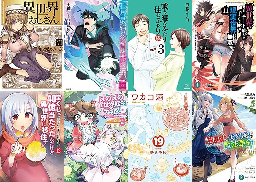 マンガでは、KADOKAWAよりTVアニメ放送中の人気異世界コメディ「異世界おじさん 8巻」のほか、「世界最強の後衛 6巻」「宝くじで40億当たったんだけど異世界に移住する 12巻」「ほのぼの異世界転生デイズ 3巻」「槍の勇者のやり直し 10巻」「魔法使いマナと叡痴の扉 2巻」など10冊以上が発売。