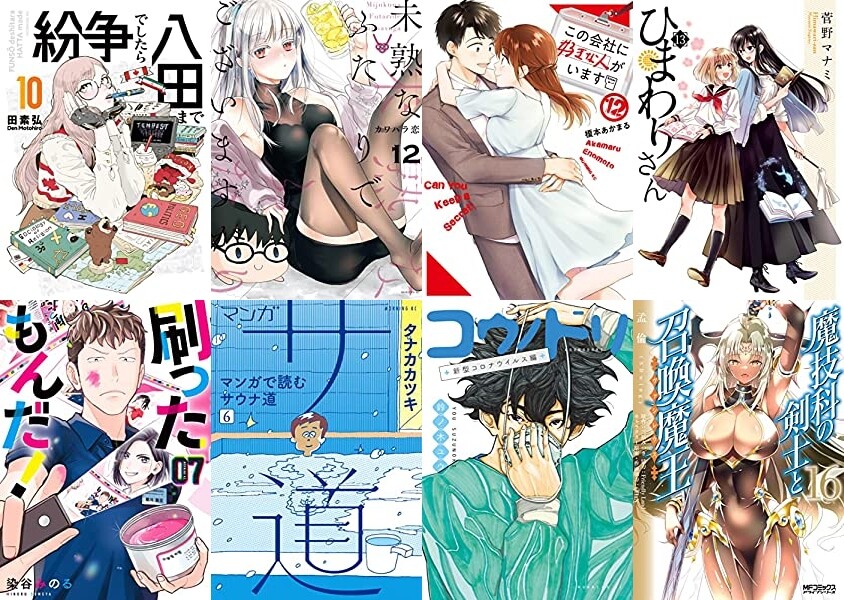講談社より40冊以上が発売!「紛争でしたら八田まで 10巻」「未熟なふたりでございますが 12巻」「この会社に好きな人がいます 12巻」「刷ったもんだ! 7巻」「マンガ サ道~マンガで読むサウナ道~ 6巻」「コウノドリ 新型コロナウイルス編」「西遊妖猿伝 西域篇 火焔山の章 4巻」「賊軍 土方歳三 7巻」「花織さんは転生しても喧嘩がしたい 2巻」など。