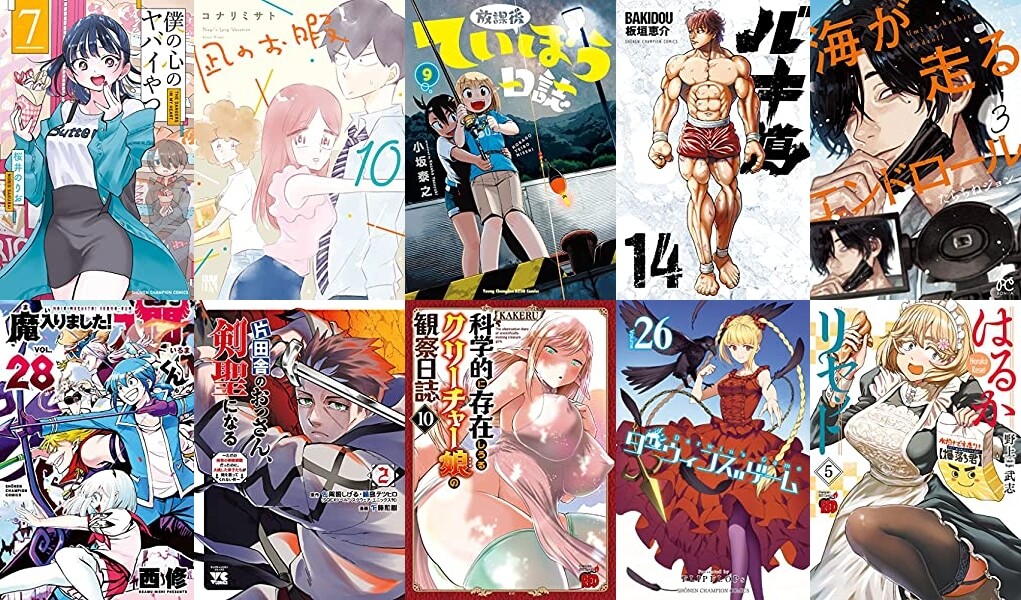 こちらでは、秋田書店コミックスをまとめました。「僕の心のヤバイやつ」「凪のお暇」「片田舎のおっさん、剣聖になる」「魔入りました!入間くん」「バキ道」「放課後ていぼう日誌」「科学的に存在しうるクリーチャー娘の観察日誌」「弱虫ペダル」「吸血鬼すぐ死ぬ」はるかリセット」「海が走るエンドロール」「ダーウィンズゲーム」などなど。