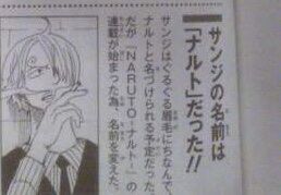 尾田: そう、サンジの眉毛がグルグルしてるでしょ? それであいつは「ナルト」だったの、設定ノートではずっと。だからサンジが登場するより先に『NARUTOーナルトー』が始まって