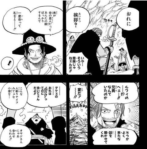 【ワンピース】シャンクスの身内とそれ以外の対応 2022/9/25 ねいろ速報さん " " 名前:ねいろ速報 すごい違うよね 『ONE PIECE』作者:尾田栄一郎 集英社 名前:ねいろ速報 1 ここの一コマ目何度見ても不機嫌すぎる 名前:ねいろ速報 2 まあわざわざ乗り込んで来られたら態度が硬化するのは当然ではある 続きを読む Source: ねいろ速報さん