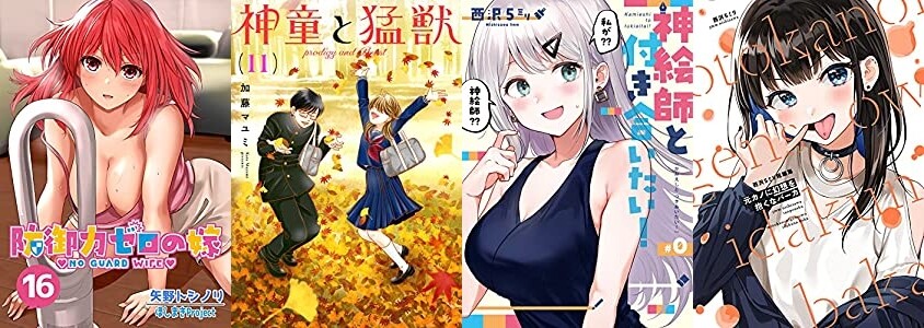 矢野トシノリさんが描く、日常夫婦ラブコメ「防御力ゼロの嫁【同人版】」1~16巻が97%OFFの11円、加藤マユミさんによる少年少女2人の日常マンガ「神童と猛獣」が約70%OFF、西沢5ミリさん「神絵師と付き合いたい!」「元カノに幻想を抱くなバーカ」など一部作品で30~50%OFFとなっています。