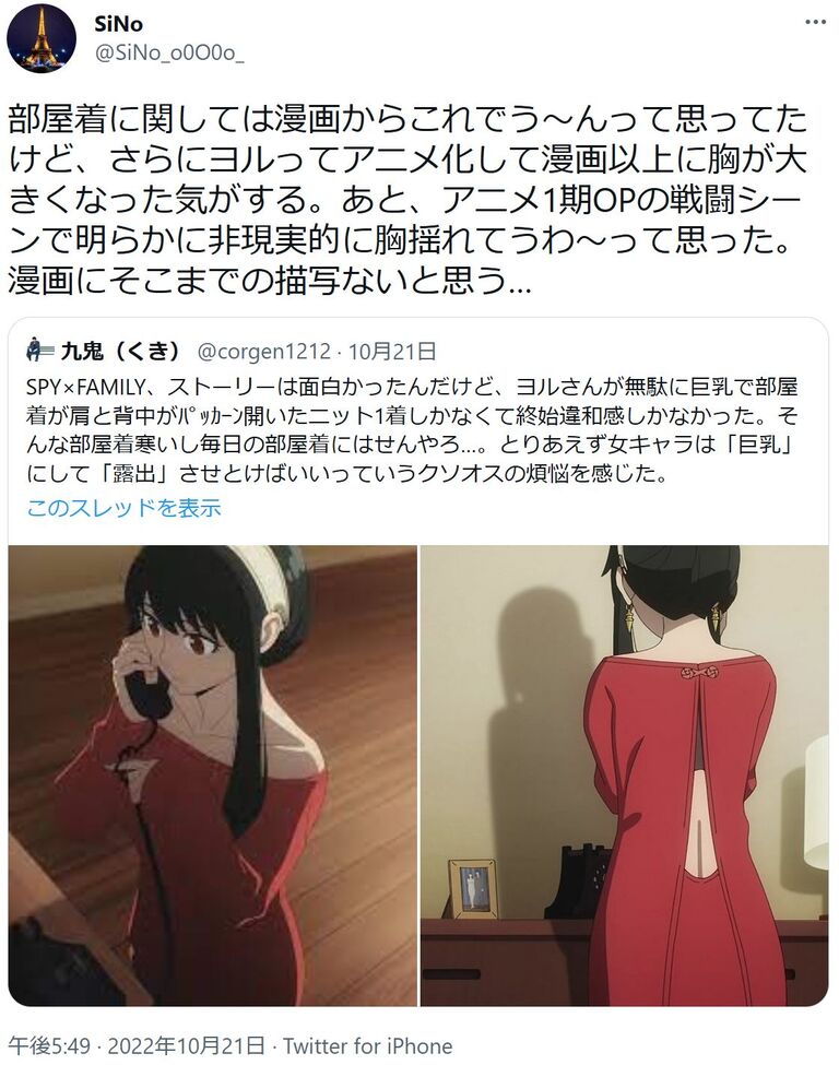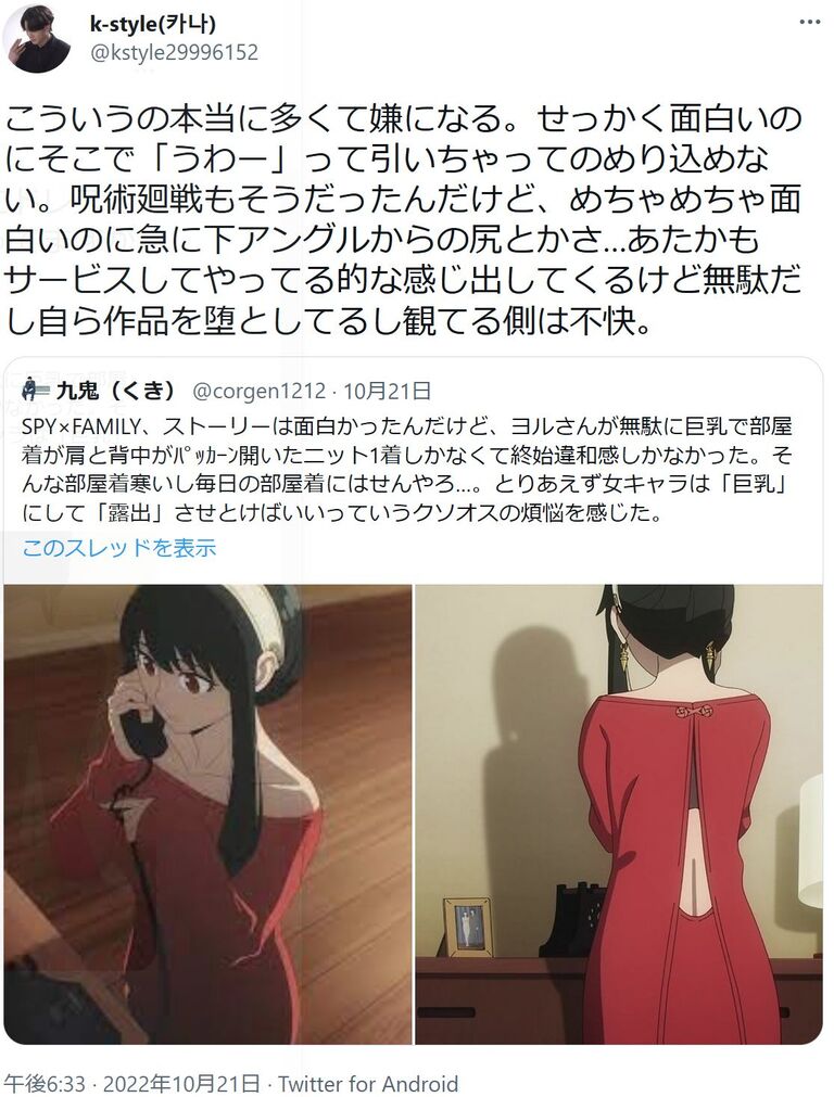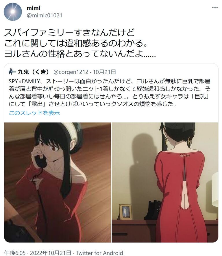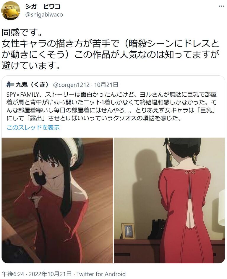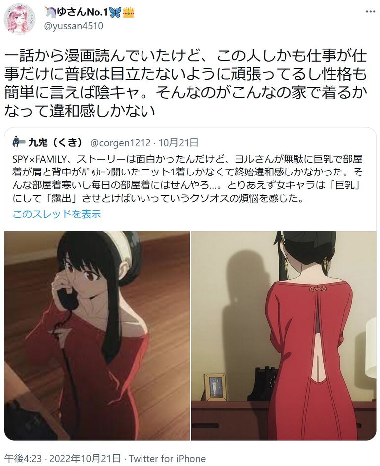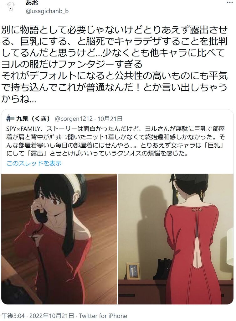 【悲報】女さん「『SPY×FAMILY』のヨルの衣装、巨πで背中が開いていて超気持ち悪い。」 2022/10/28 ジャンプ速報 " " 1: それでも動く名無し 2022/10/22(土) 17:33:55.30 ID:zldeW76b0 続きを読む Source: ジャンプ速報