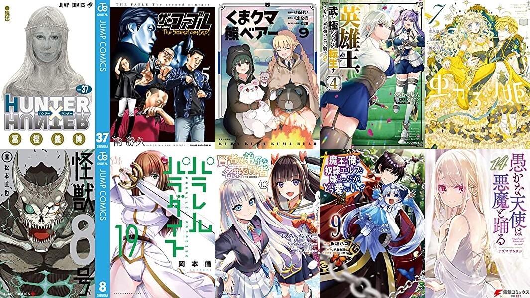 集英社よりジャンプコミックス「HUNTER×HUNTER 37巻」「怪獣8号 8巻」「青の祓魔師 28巻」「逃げ上手の若君 8巻」「ウィッチウォッチ 8巻」「SAKAMOTO DAYS 9巻」「あやかしトライアングル 11巻」「ブラッククローバー 33巻」「左ききのエレン 22巻」「キン肉マン 80巻」「株式会社マジルミエ 5巻」「道産子ギャルはなまらめんこい 9巻」など発売。