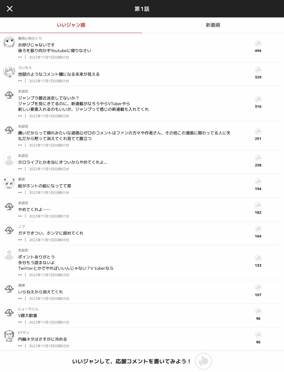 【悲報】ジャンプ+新連載の「VTuber」の漫画、コメント欄が大荒れしてしまう・・・ 2022/11/1 最強ジャンプ放送局 " " 1: 2022/11/01(火) 00:23:37.70 2: 2022/11/01(火) 00:24:05.40 ええんか? 4: 2022/11/01(火) 00:24:55.96 更新直後にこれってキッツいな 13: 2022/11/01(火) 00:27:27.65 こんなんでも火曜日のトップ取るんだよな 続きを読む Source: 最強ジャンプ放送局