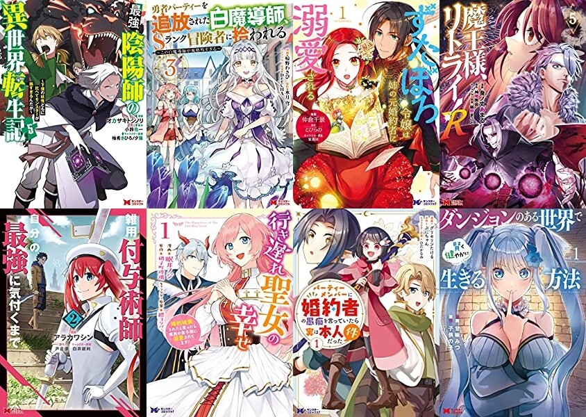 「最強陰陽師の異世界転生記」「勇者パーティーを追放された白魔導師、Sランク冒険者に拾われる」「ずたぼろ令嬢は姉の元婚約者に溺愛される」「魔王様、リトライ!R」「雑用付与術師が自分の最強に気付くまで」「行き遅れ聖女の幸せ」「パーティーメンバーに婚約者の愚痴を言っていたら実は本人だった件」「ダンジョンのある世界で賢く健やかに生きる方法」「村人転生 最強のスローライフ」「学園物の乙女ゲームの世界に転生したけど、チート持ちの背景男子生徒だったようです。」などなど。専用セールページがないので、450~500円あたりかを確認してみるといいかと思います。