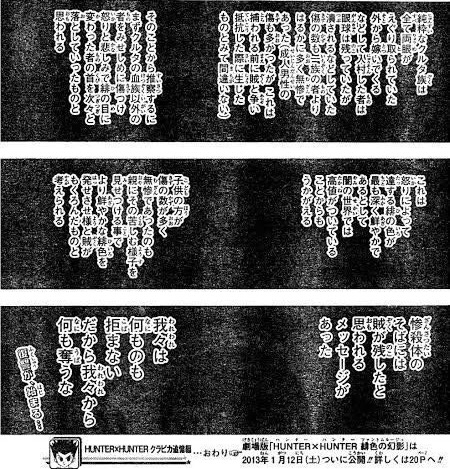 【ハンターハンター】旅団はクラピカにごめんなさいしないといけない 2022/11/23 ねいろ速報さん " " 名前:ねいろ速報 『HUNTER×HUNTER』 冨樫義博 集英社 名前:ねいろ速報 1 すげー奪うじゃん 名前:ねいろ速報 2 なんかここだけ読むと蜘蛛の仕業じゃなくて流星街の犯行っぽいんだよね 続きを読む Source: ねいろ速報さん