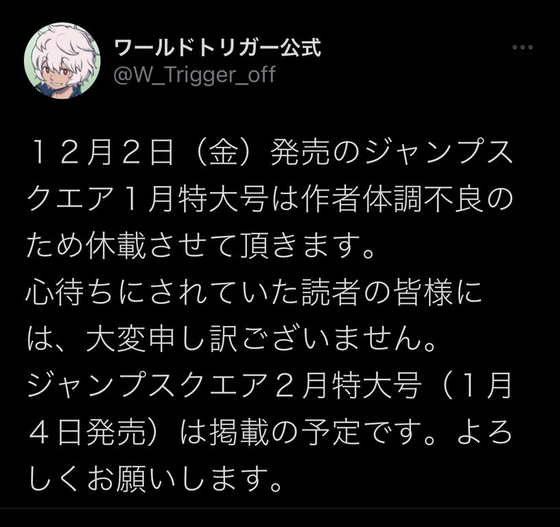 【悲報】ワールドトリガー、休載 2022/11/28 ジャンプ速報 " " 1: それでも動く名無し 2022/11/25(金) 18:58:03.48 ID:NaEh9OLg0 続きを読む Source: ジャンプ速報