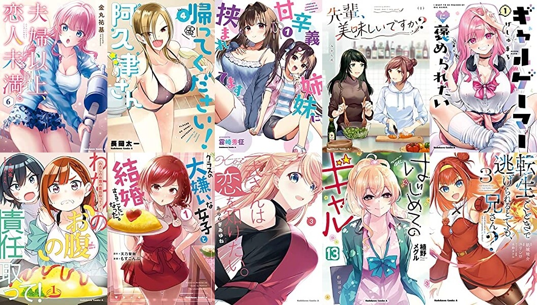 セールとなっているのは、「夫婦以上、恋人未満。」「帰ってください! 阿久津さん」「甘辛義姉妹に挟まれてます」「先輩、美味しいですか?」「ギャルゲーマーに褒められたい」「わたしのお腹の責任取って!」「クラスの大嫌いな女子と結婚することになった。」「一式さんは恋を知りたい。」「はじめてのギャル」「転生ごときで逃げられるとでも、兄さん?」「年上エリート女騎士が僕の前でだけ可愛い」…などなど。