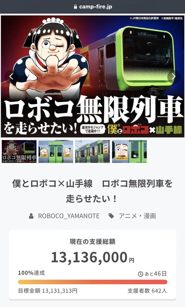 【悲報】ロボコ「クラファンで1300万円集まったら無限列車走らせまーす」→結果は…… 2022/12/14 ジャンプ速報 " " 1: それでも動く名無し 2022/12/13(火) 08:57:49.73 ID:zMCjCz+ga おめでとう😁 続きを読む Source: ジャンプ速報