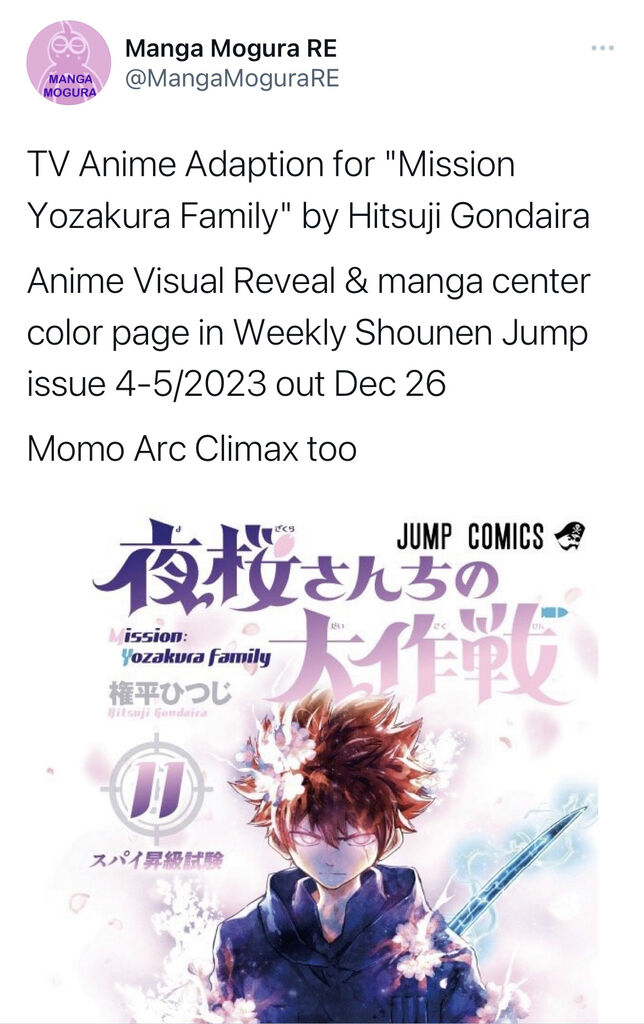 【悲報】週刊少年ジャンプ、弾がなさすぎて夜桜さんちの大作戦でさえアニメ化してしまう… 2022/12/17 ジャンプ速報 " " 1: それでも動く名無し 2022/12/14(水) 21:17:29.04 ID:/gSWtGdqd えぇ… 続きを読む Source: ジャンプ速報