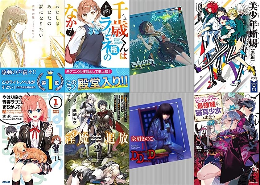 講談社では「物語シリーズ」「美少年シリーズ」など西尾維新さん作品に、「DDD」「空の境界」「勇者パーティーを追放されたビーストテイマー、最強種の猫耳少女と出会う」「魔法使い黎明期」「老後に備えて異世界で8万枚の金貨を貯めます」などなど。