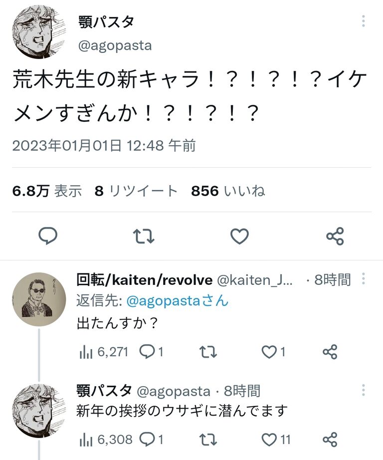 【話題】ジョジョ9部の主人公公開wwwwwwwww 2023/1/3 ジャンプ速報 " " 1: それでも動く名無し 2023/01/01(日) 09:10:06.12 ID:UrvCRcdJ0 BE:802034645-2BP(1000) 続きを読む Source: ジャンプ速報