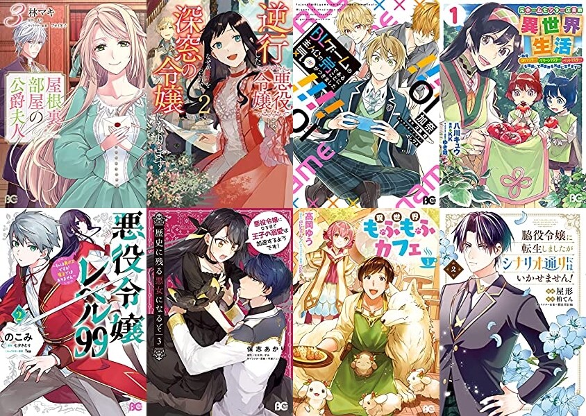 女性向けの異世界作品が数多くあるB’s LOG作品。「屋根裏部屋の公爵夫人」「逆行した悪役令嬢は、なぜか魔力を失ったので深窓の令嬢になります」「BLゲームの主人公の弟であることに気がつきました」「元ホームセンター店員の異世界生活」「悪役令嬢レベル99」「歴史に残る悪女になるぞ 悪役令嬢になるほど王子の溺愛は加速するようです!」「異世界もふもふカフェ」「脇役令嬢に転生しましたがシナリオ通りにはいかせません!」など、対象です。