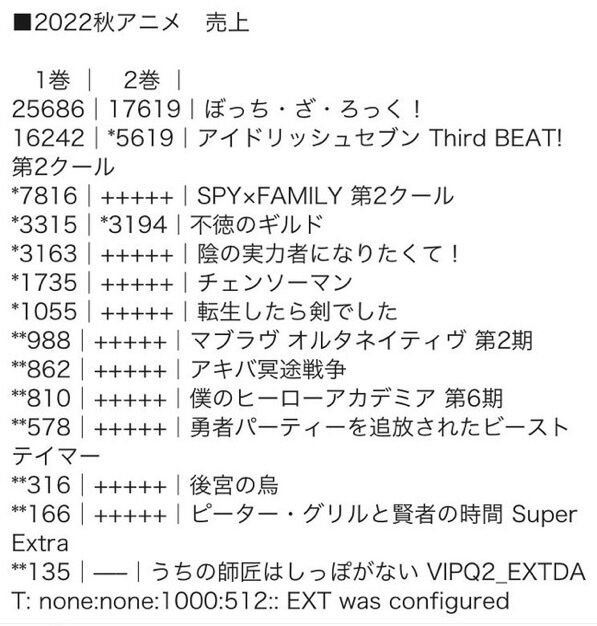 【急募】チェンソーマンの円盤売上が悪いのは分かるとして、意味わからんなろうにまで負けてる理由 2023/2/5 ジャンプ速報 " " 1: それでも動く名無し 2023/02/03(金) 01:14:05.48 ID:paTpJo8N0 ↑ 円盤売上が悪いのは分かるんやが、知名度もあって作画も良くて脚本もめちゃくちゃ悪いわけでもないのに、全く名前の知られてないなろうにまで負けてる理由はなんなんや 続きを読む Source: ジャンプ速報