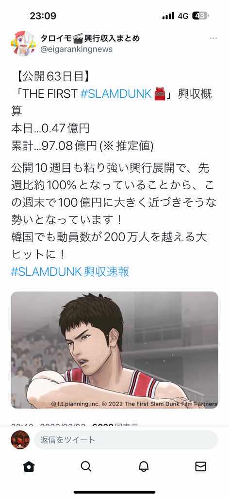 【話題】映画スラムダンク、97億円 2023/2/7 ジャンプ速報 " " 1: 風吹けば名無し 2023/02/03(金) 23:10:55.02 ID:VfURL+t9p お前ら負けたのか😆 グラフ 続きを読む Source: ジャンプ速報