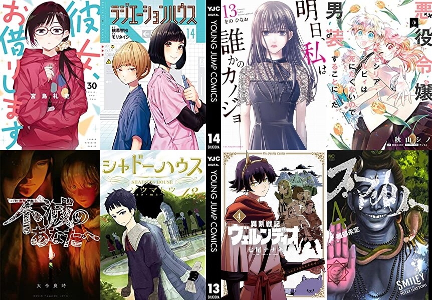 集英社からはヤングジャンプコミックス「ラジエーションハウス 14」「/Blush-DC ~秘・蜜~ 12」「シャドーハウス 13」「ジャンケットバンク 10」「来世ではちゃんとします 10」「王立魔法学園の最下生~貧困街上がりの最強魔法師、貴族だらけの学園で無双する~ 8」「黒猫の剣士 4」「黒猫の剣士 12」「スーサイドガール 7」「生産職を極め過ぎたら伝説の武器が俺の嫁になりました 6」「花は咲く、修羅の如く 4」など発売。