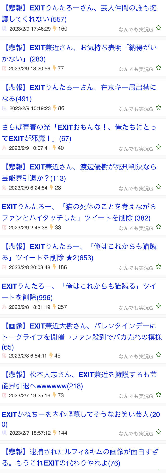 【話題】2023なんG三大黒歴史「JAXA失敗民」「EXIT兼近叩き」「スラダン叩き」 2023/3/1 ジャンプ速報 " " 1: それでも動く名無し 2023/02/25(土) 17:54:43.41 ID:G6TcTbWMd あと一つは? 続きを読む Source: ジャンプ速報