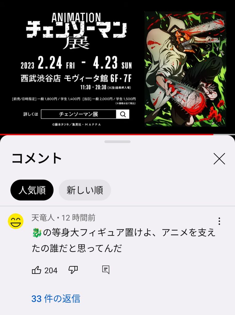 【悲報】チェンソーマン展のCMのコメント欄、意味不明な理由で荒れてしまうwww 2023/3/7 ジャンプ速報 " " 1: それでも動く名無し 2023/03/03(金) 07:21:12.79 ID:JqM5wR6fa0303 続きを読む Source: ジャンプ速報