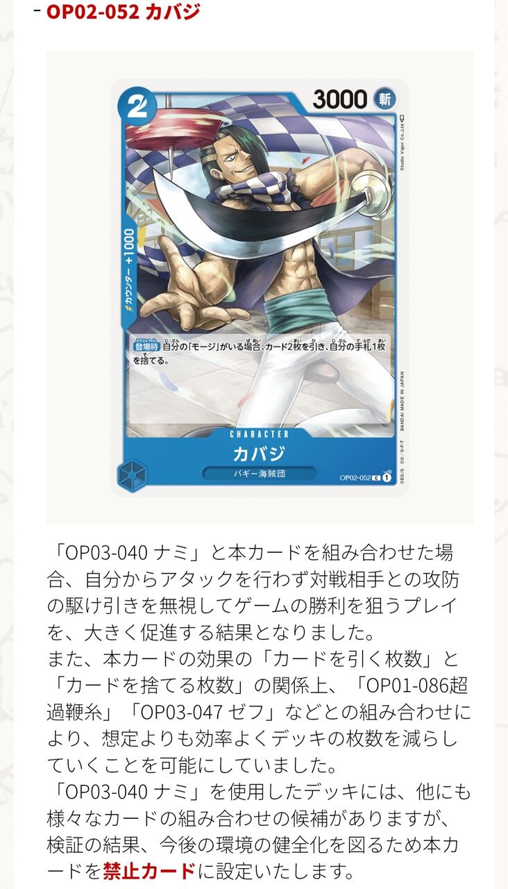 あのカバジとモビーディック号がワンピースカード初の禁止カード