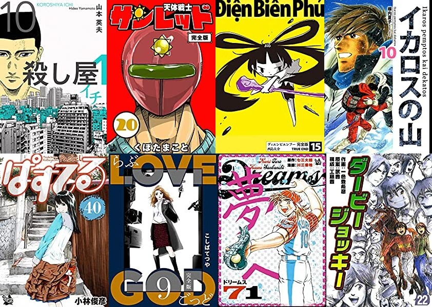 セールとなっているのは、「殺し屋1(イチ)」「天体戦士サンレッド 完全版」「ディエンビエンフー 完全版」「イカロスの山」「ぱすてる」「LOVE GOD 〔完全版〕」「Dreams」「ダービージョッキー」「Y氏の隣人 完全版」「Deep Love REAL 〔完全版〕」などなど。