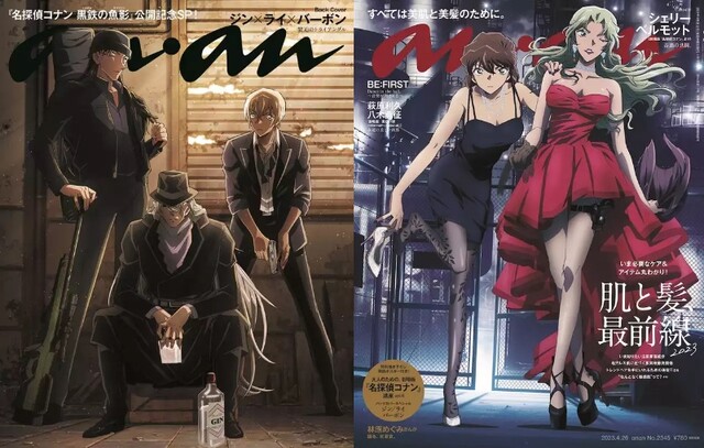 【#anan 2345号表紙&バックカバー解禁】4/19発売のananは『#名探偵コナン』から、表紙に #シェリー と #ベルモット。バックカバーに #ジン、#ライ、#バーボン が登場、#黒ずくめの組織 が #anan表裏ジャック!!