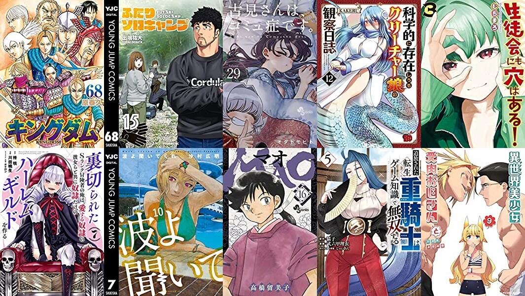 集英社より「キングダム 68」「裏切られたSランク冒険者の俺は、愛する奴隷の彼女らと共に奴隷だけのハーレムギルドを作る 7」「新しいきみへ 4」「銀河英雄伝説 26」「久保さんは僕を許さない 12」「バトゥーキ 15」など、講談社「ふたりソロキャンプ(15)」「波よ聞いてくれ(10)」「生徒会にも穴はある!(3)」「追放された転生重騎士はゲーム知識で無双する(5)」「黒岩メダカに私の可愛いが通じない(9)」「カノジョも彼女(15)」「僕は君たちを支配する(6)」「女神のカフェテラス(10)」「カナン様はあくまでチョロい(3)」など発売。
