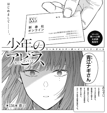 【少年のアビス】136話 感想…ナギの窮地 2023/5/18 ねいろ速報さん " " 名前:ねいろ速報 【少年のアビス】 峰浪りょう 集英社 名前:ねいろ速報 27 そろそろ流石に終わる感じかな 名前:ねいろ速報 32 >>27 次回でナギが宣戦布告して 柴ちゃんの嫉妬に火が着くのでは? 柴ちゃん顔変わっとるやんけ 続きを読む Source: ねいろ速報さん