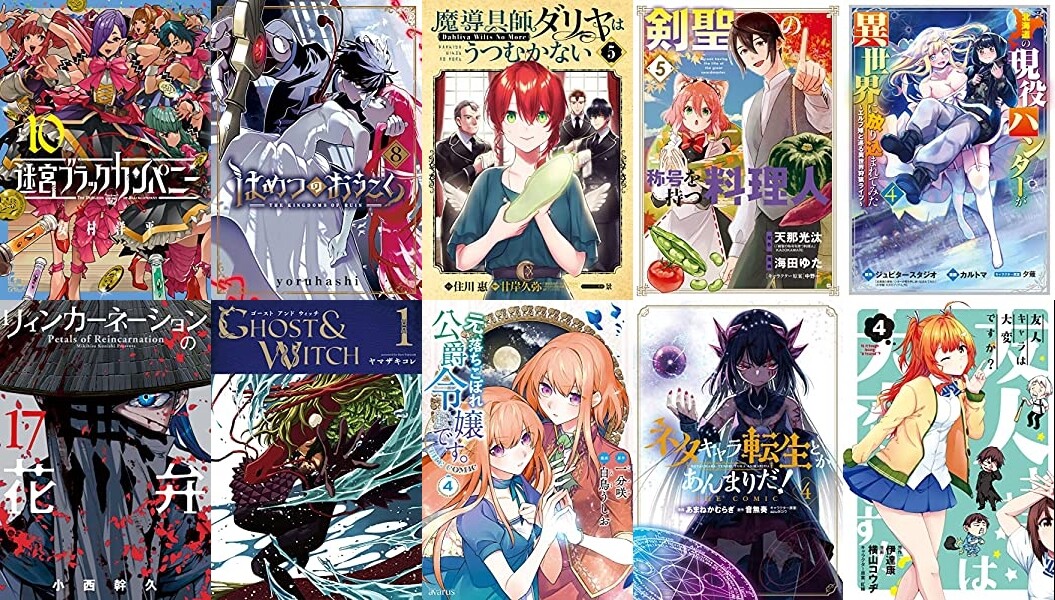 こちらでは、マッグガーデンコミックスまとめ第2弾!「迷宮ブラックカンパニー」「はめつのおうこく」「魔導具師ダリヤはうつむかない~Dahliya Wilts No More~」「剣聖の称号を持つ料理人」「北海道の現役ハンターが異世界に放り込まれてみた ~エルフ嫁と巡る異世界狩猟ライフ~」「リィンカーネーションの花弁」「ゴーストアンドウィッチ」「元、落ちこぼれ公爵令嬢です。」「ネタキャラ転生とかあんまりだ!」「友人キャラは大変ですか?」などなど(第1弾はこちら)。